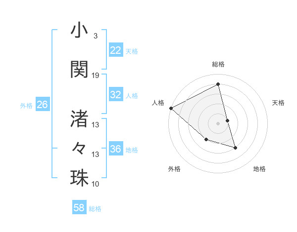 小関 渚々珠さんを姓名の画数から五運を鑑定