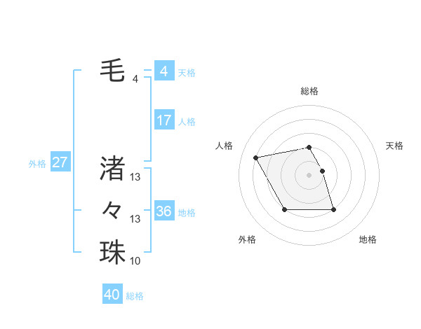 毛 渚々珠さんを姓名の画数から五運を鑑定