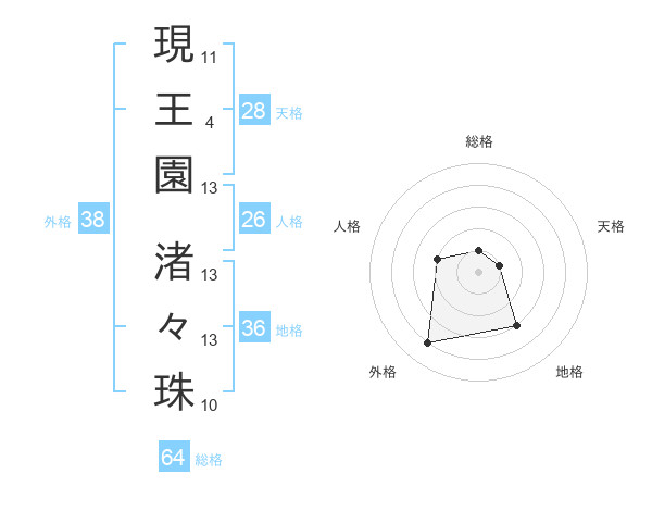 現王園 渚々珠さんを姓名の画数から五運を鑑定
