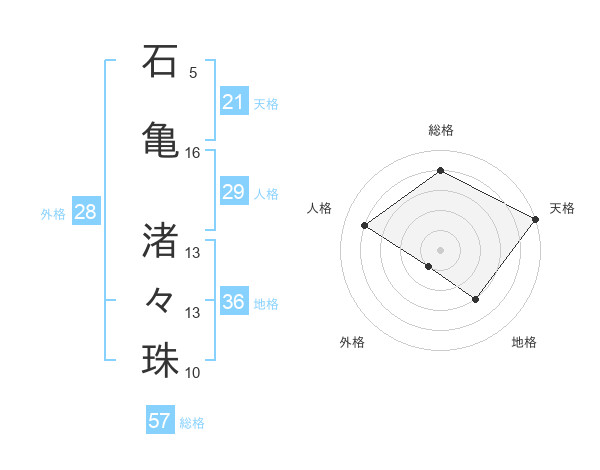 石亀 渚々珠さんの総格は57画の4点!