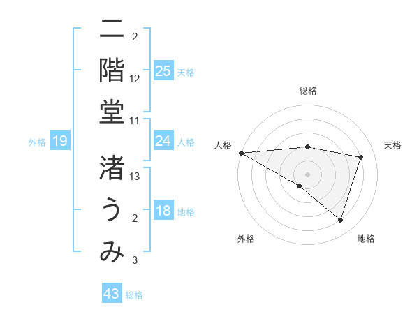 二階堂 渚うみさんを姓名の画数から五運を鑑定