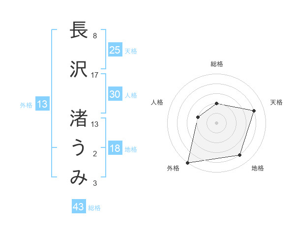 長沢 渚うみさんの外格は13画の5点!