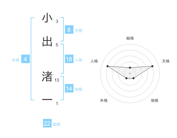 小出 渚一さんの総格は22画の1点!