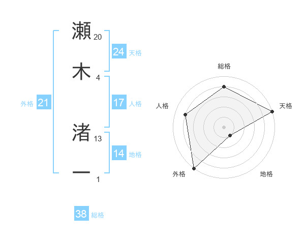 瀬木 渚一さんを姓名の画数から五運を鑑定
