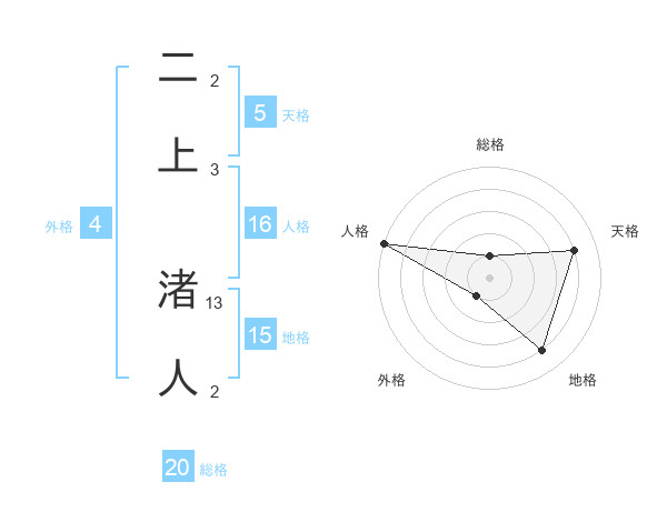 二上 渚人さんの天格は5画の4点!