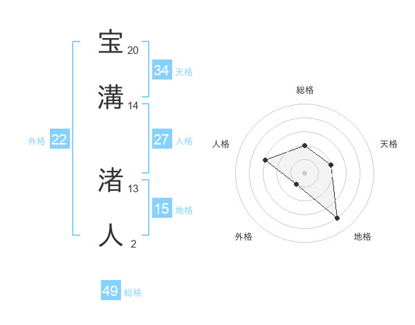 宝溝 渚人さんの総格は49画の2点!