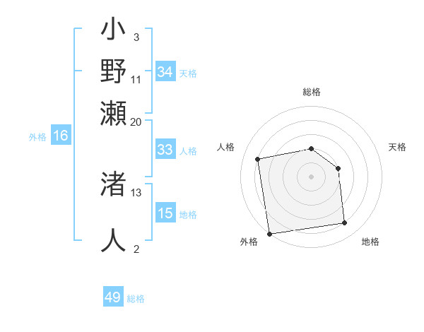 小野瀬 渚人さんを姓名の画数から五運を鑑定