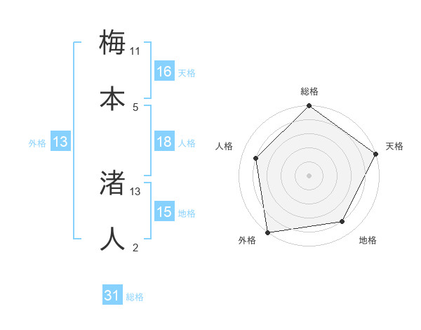 梅本 渚人さんの総格は31画の5点!