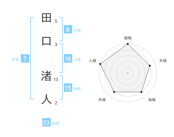 田口 渚人さんの総格は23画の5点!