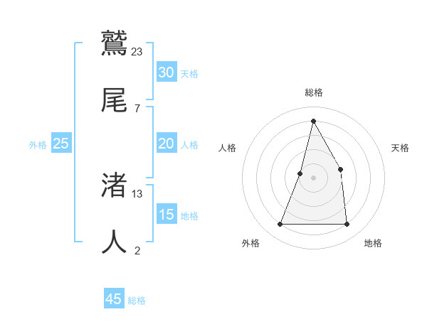 鷲尾 渚人さんの総格は45画の4点!
