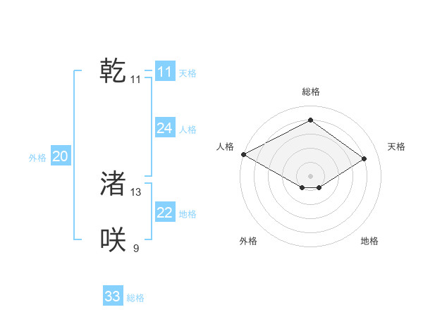 乾 渚咲さんの総格は33画の4点!