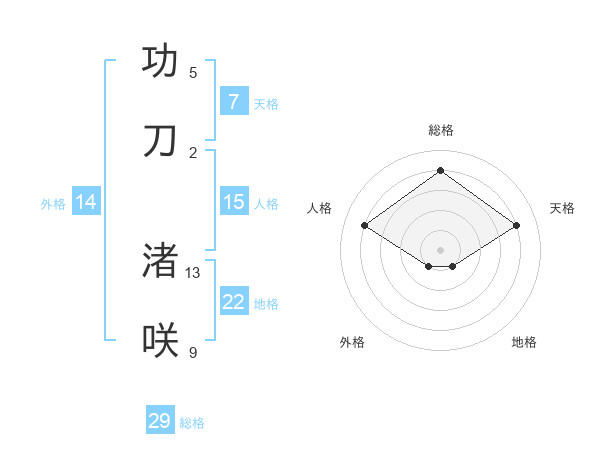 功刀 渚咲さんを姓名の画数から五運を鑑定
