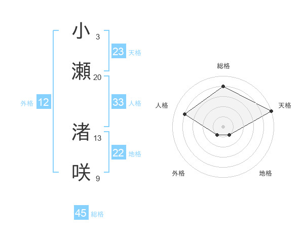 小瀬 渚咲さんを姓名の画数から五運を鑑定