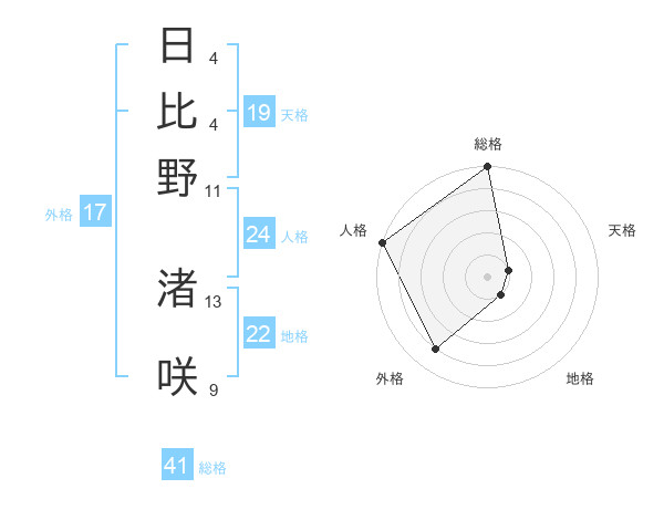 日比野 渚咲さんを姓名の画数から五運を鑑定