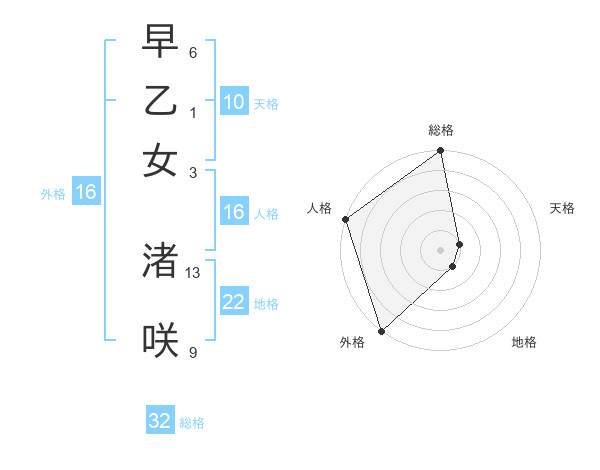 早乙女 渚咲さんを姓名の画数から五運を鑑定