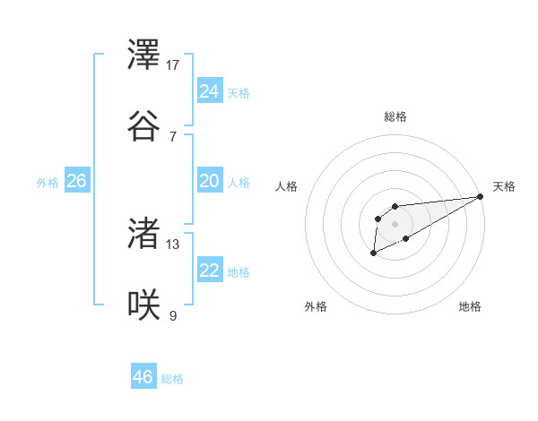 澤谷 渚咲さんの天格は24画の5点!