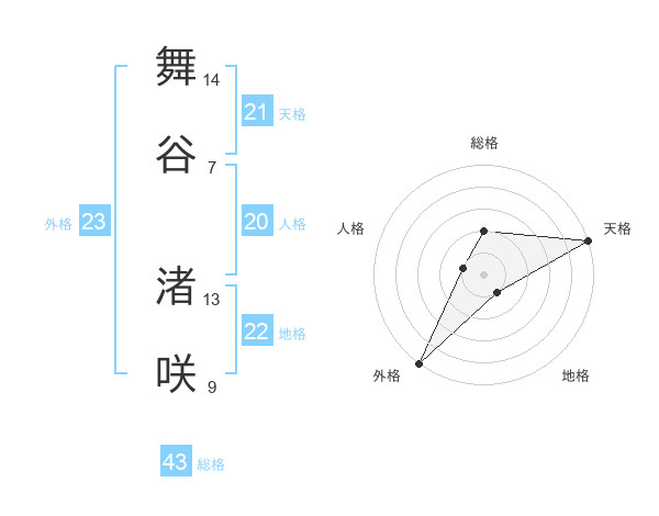 舞谷 渚咲さんを姓名の画数から五運を鑑定