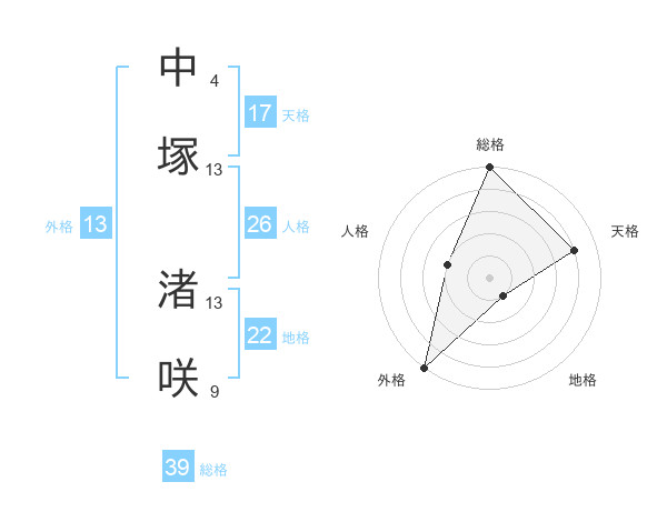 中塚 渚咲さんを姓名の画数から五運を鑑定