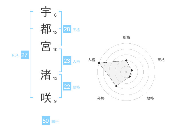 宇都宮 渚咲さんを姓名の画数から五運を鑑定