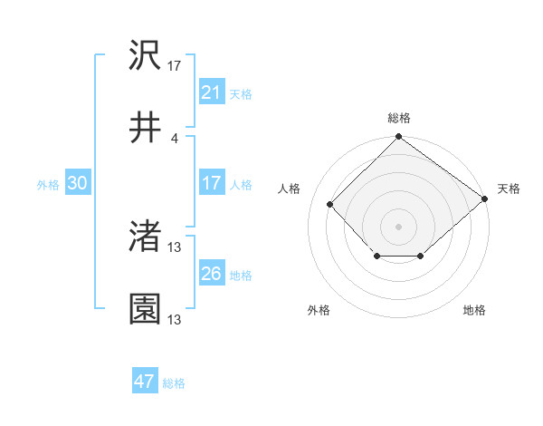 沢井 渚園さんを姓名の画数から五運を鑑定