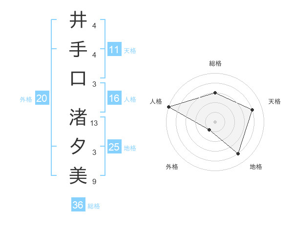井手口 渚夕美さんを姓名の画数から五運を鑑定