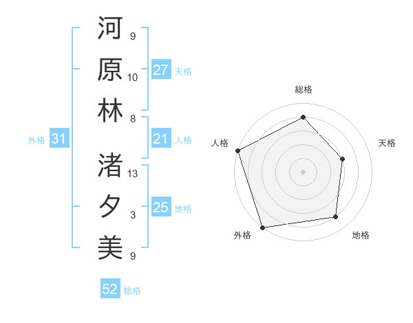 河原林 渚夕美さんの総格は52画の4点!