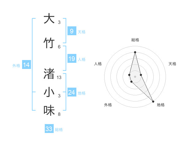 大竹 渚小味さんの総格は33画の4点!