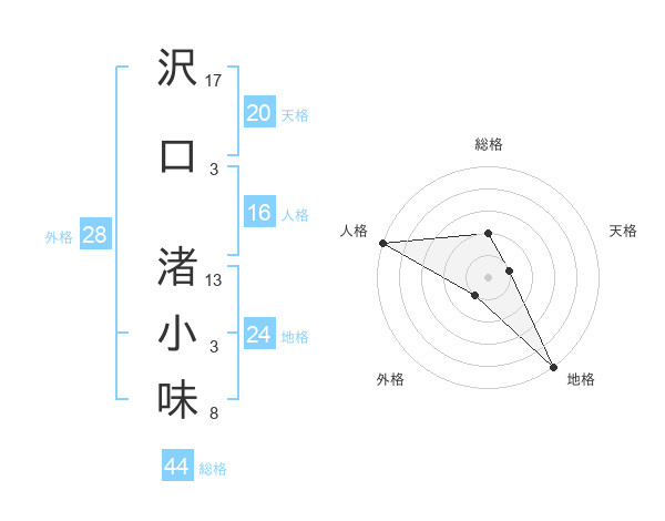 沢口 渚小味さんの総格は44画の2点!