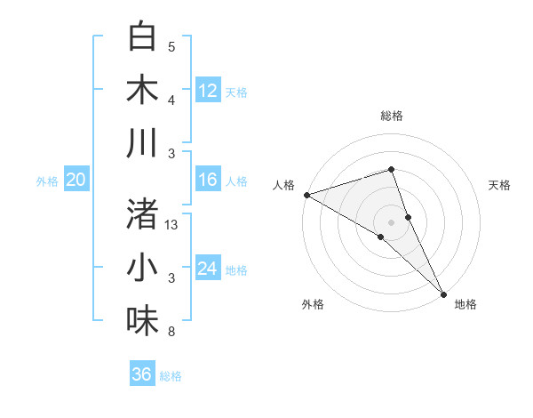 白木川 渚小味さんの総格は36画の3点!