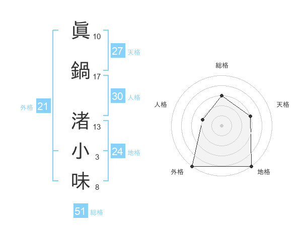 眞鍋 渚小味さんを姓名の画数から五運を鑑定