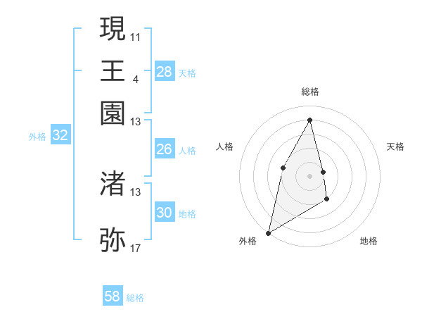 現王園 渚弥さんを姓名の画数から五運を鑑定