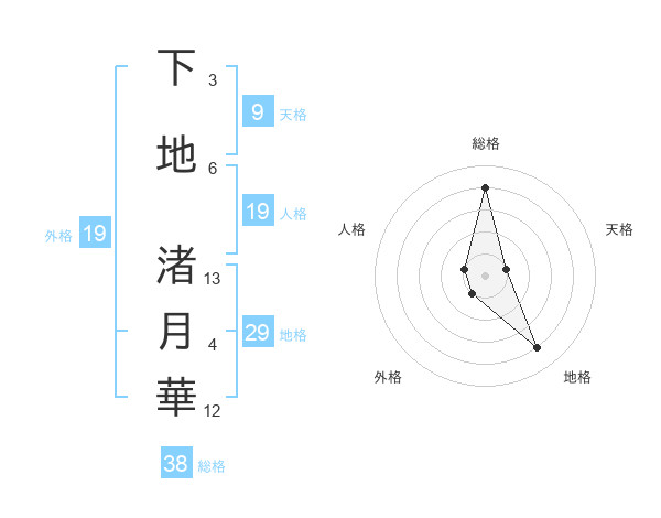 下地 渚月華さんの総格は38画の4点!