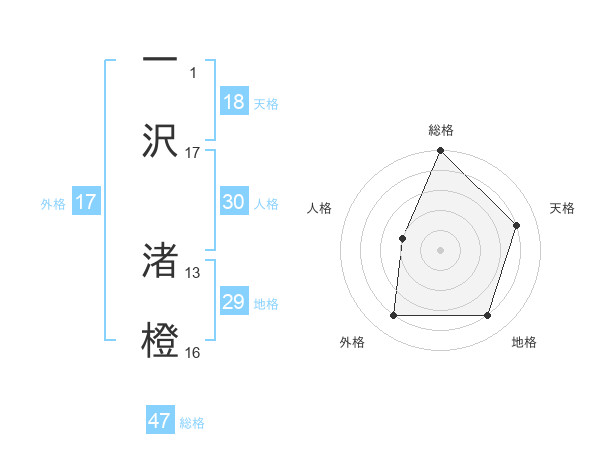 一沢 渚橙さんを姓名の画数から五運を鑑定
