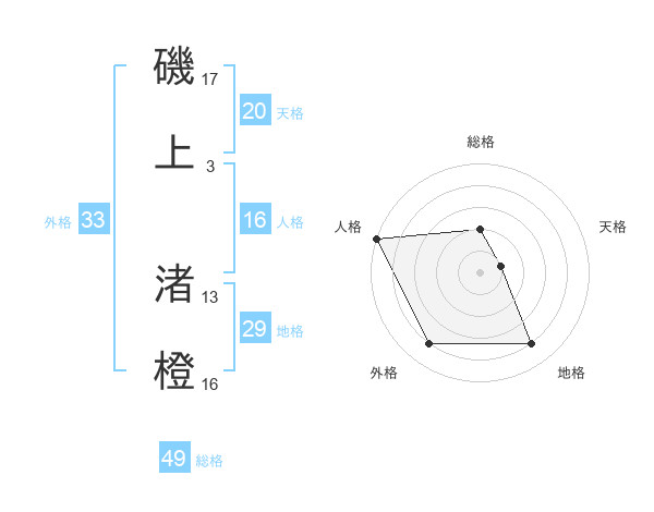 磯上 渚橙さんの外格は33画の4点!