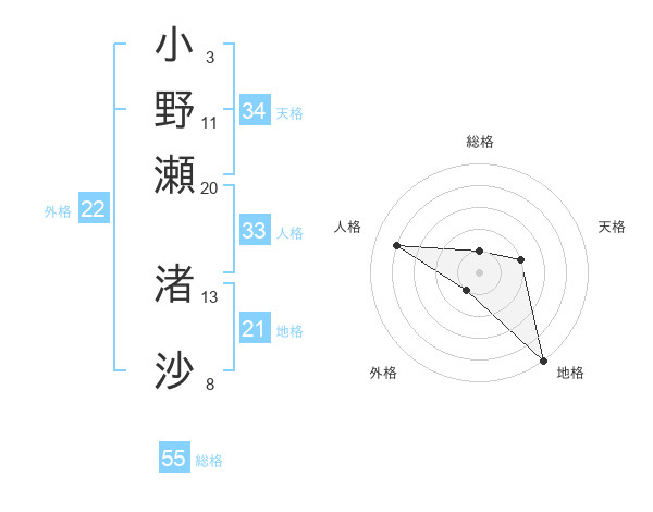 小野瀬 渚沙さんの総格は55画の1点!