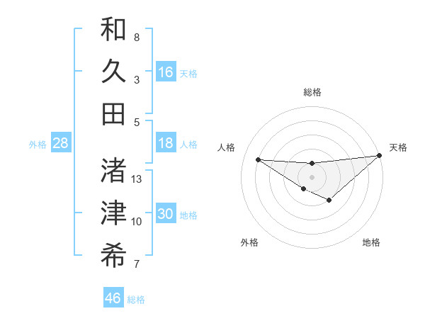 和久田 渚津希さんの天格は16画の5点