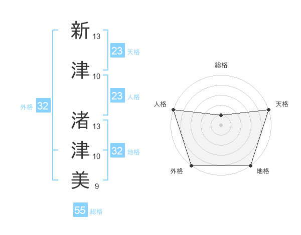 新津 渚津美さんを姓名の画数から五運を鑑定
