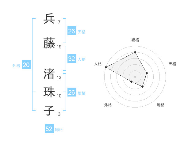 兵藤 渚珠子さんを姓名の画数から五運を鑑定