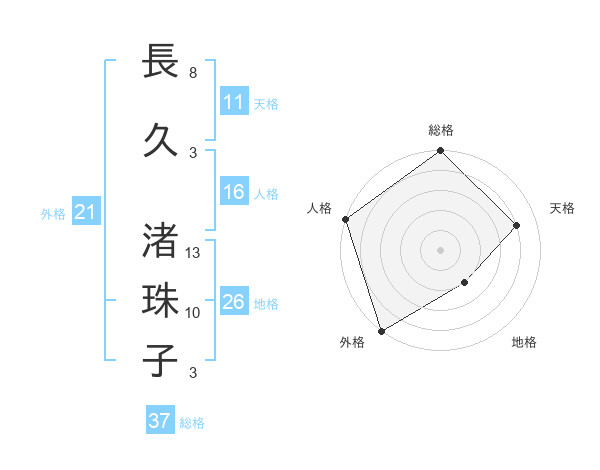 長久 渚珠子さんを姓名の画数から五運を鑑定