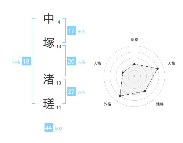 中塚 渚瑳さんを姓名の画数から五運を鑑定