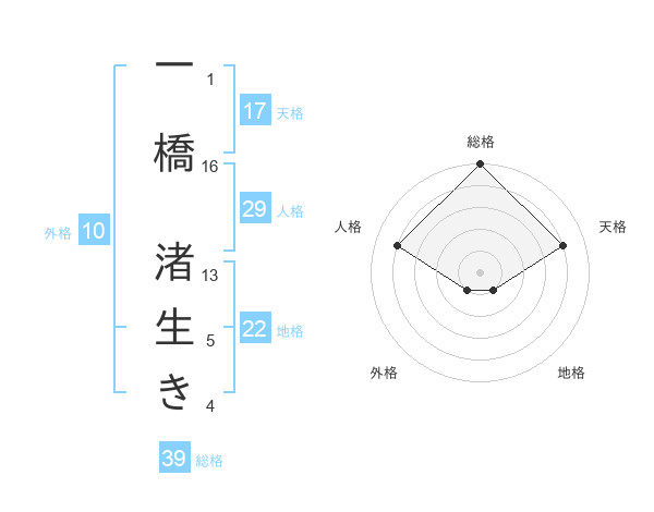 一橋 渚生きさんを姓名の画数から五運を鑑定
