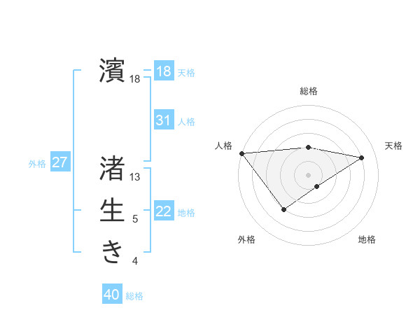 濱 渚生きさんの天格は18画の4点!