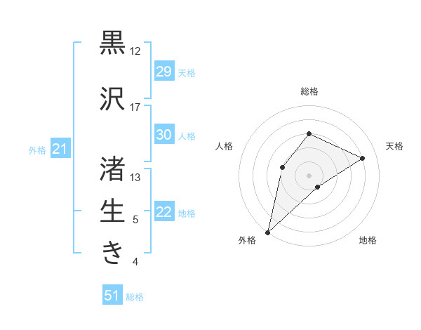 黒沢 渚生きさんを姓名の画数から五運を鑑定