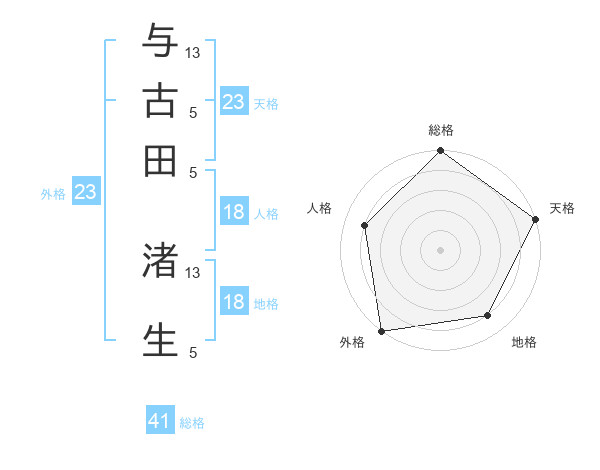 与古田 渚生さんを姓名の画数から五運を鑑定