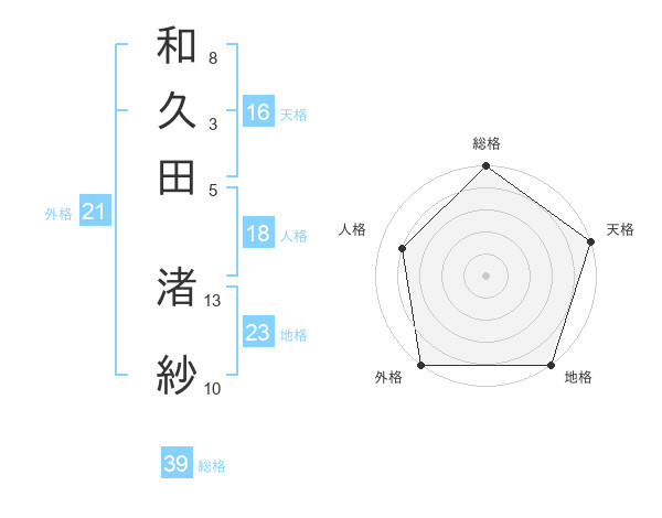 和久田 渚紗さんの総格は39画の5点!