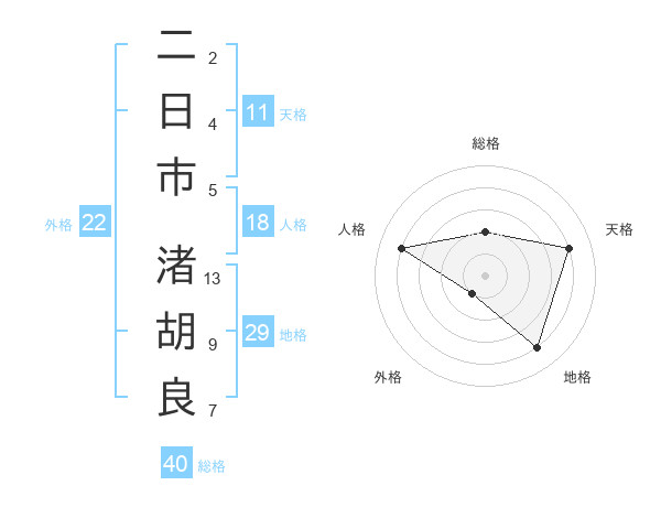 二日市 渚胡良さんの総格は40画の2点!