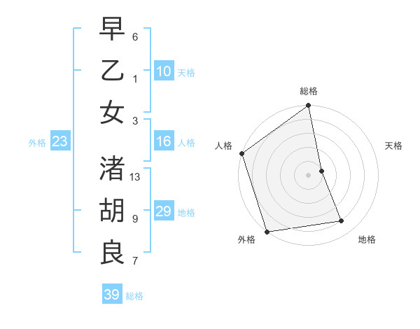 早乙女 渚胡良さんを姓名の画数から五運を鑑定