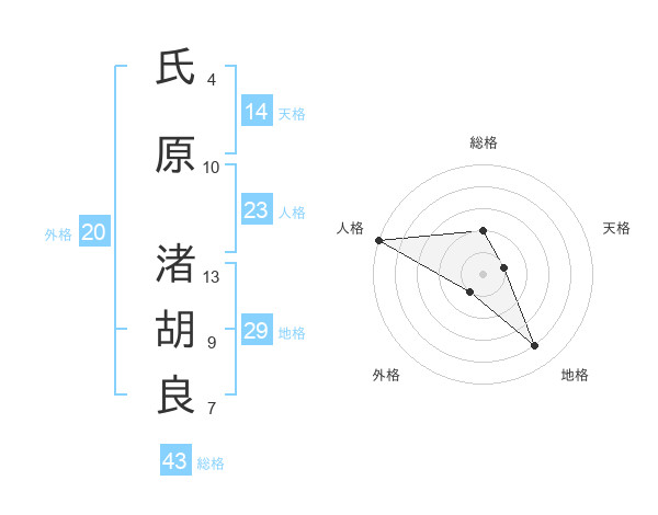 氏原 渚胡良さんを姓名の画数から五運を鑑定