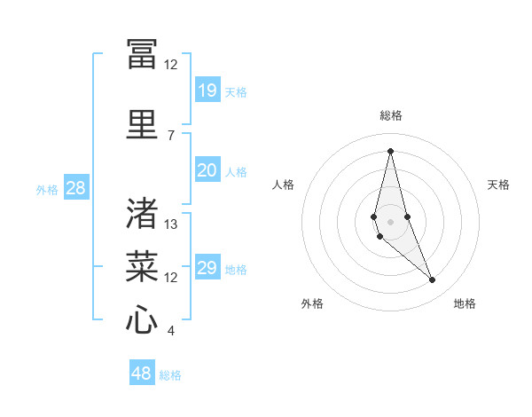冨里 渚菜心さんの総格は48画の4点!