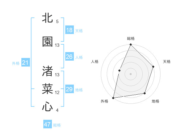 北園 渚菜心さんを姓名の画数から五運を鑑定